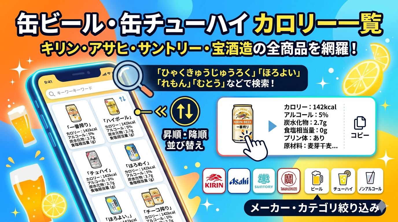 🍺 缶ビール・缶チューハイ カロリー一覧 100mlあたり(公式値)