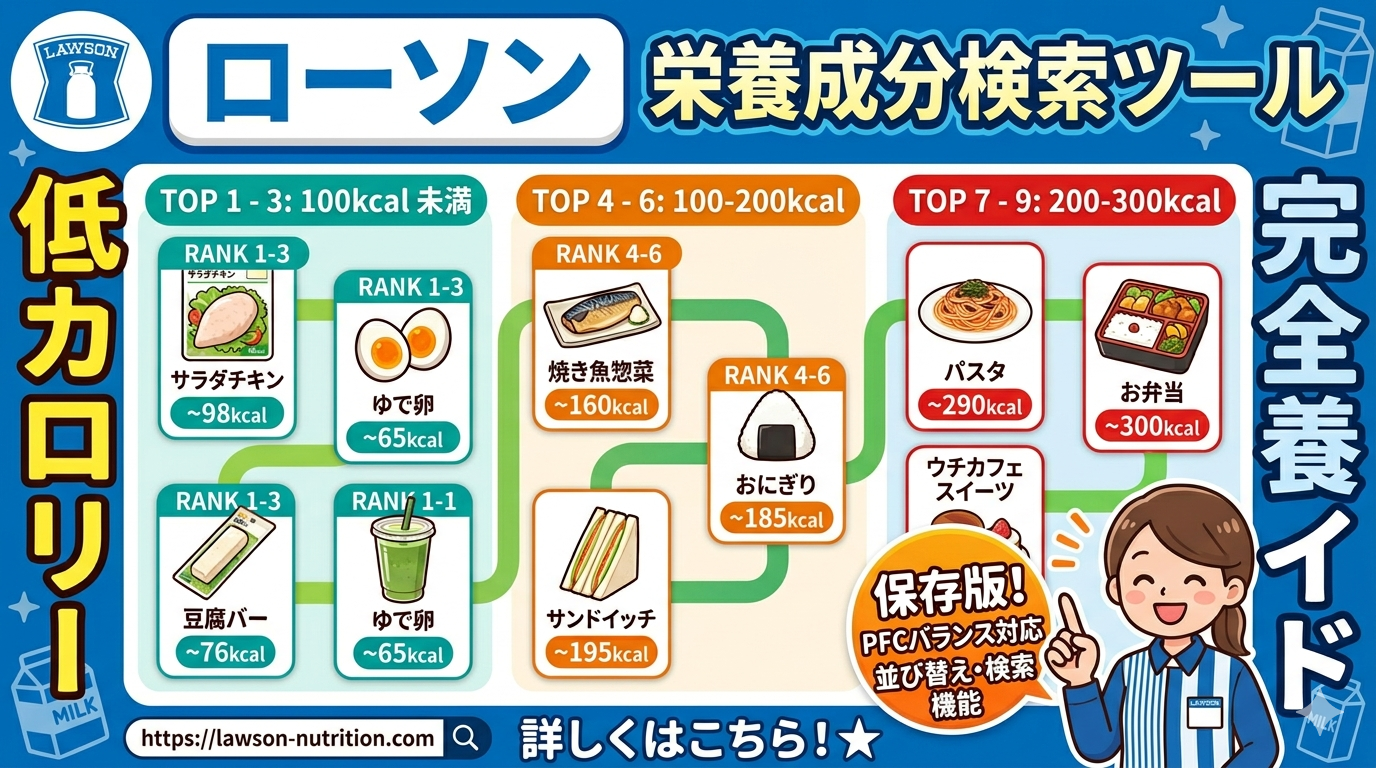 ローソン全商品の栄養成分を一括で確認できるツールです。