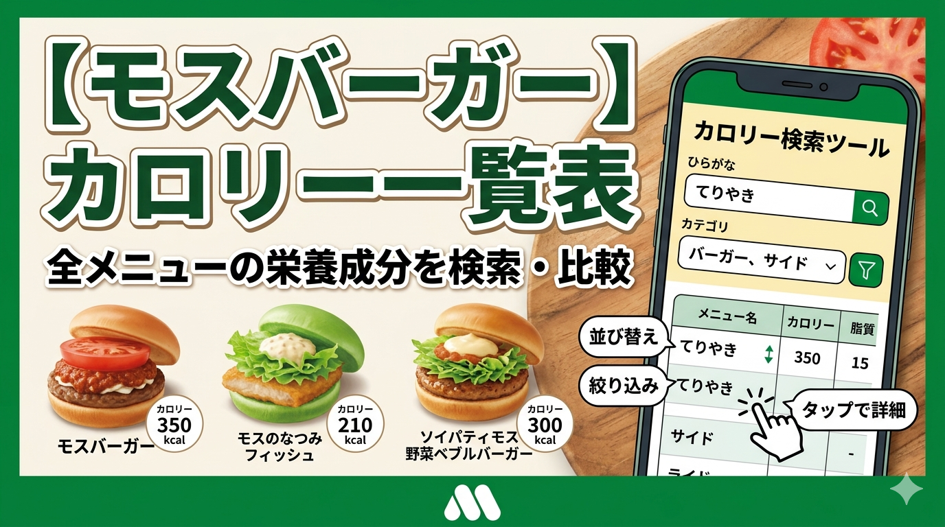 掲載データはモスバーガー公式栄養成分表(2026年3月18日現在)に基づく推定値です。最新情報はモスバーガー公式サイトでご確認ください。